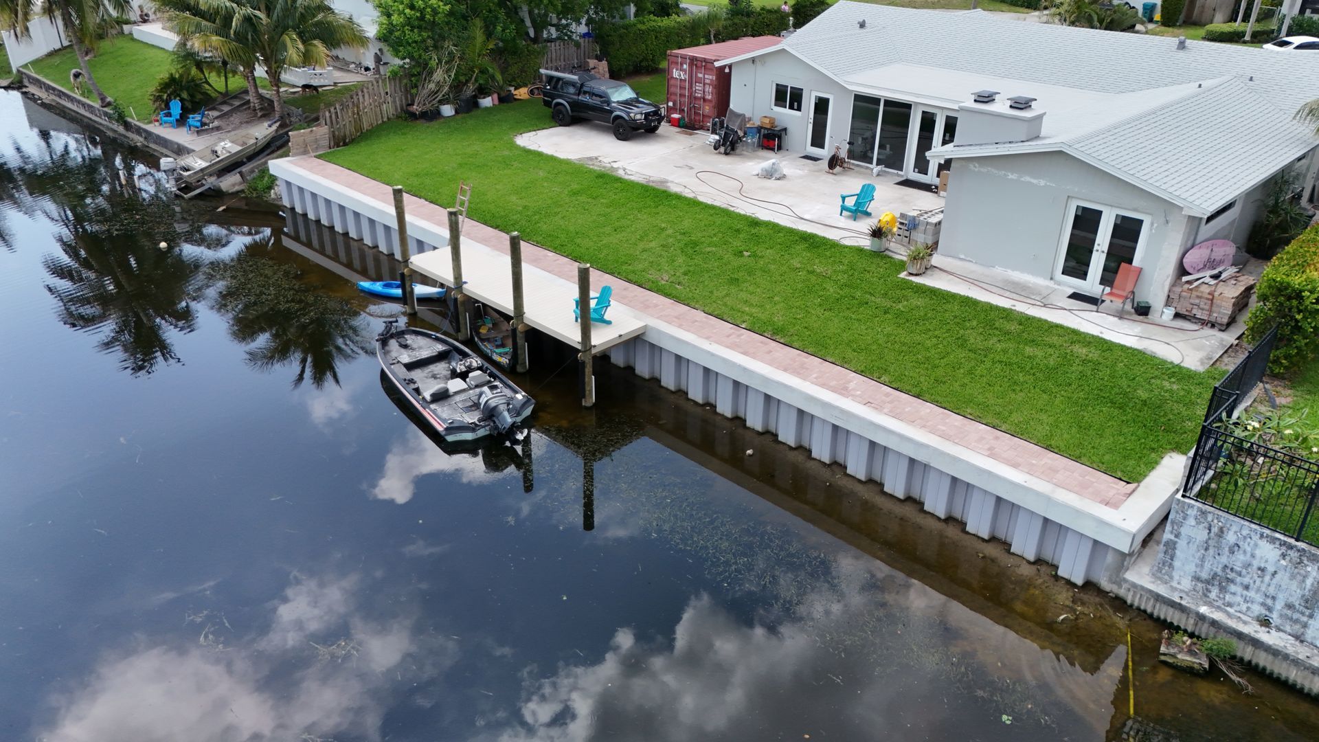 This project involved the installation of a brand-new seawall and small dock along a freshwater waterfront in Boynton Beach, Florida. The site presented unique challenges, including dense vegetation that had to be carefully removed prior to construction.